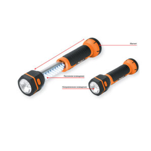 Lanterna LED Defort DDL-36 este fabricata din plastic cauciucat si este excelenta pentru iluminare directionala si difuza. De exemplu, pentru a ilumina zona din jurul mașinii la schimbarea roților sau pentru a fi folosit ca reflector de căutare.