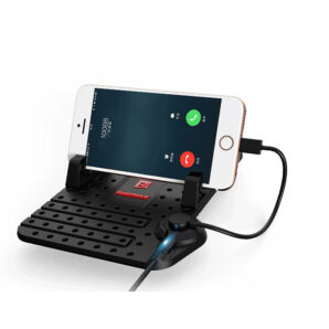 1. Установите коврик — держатель на торпеду: низ коврика покрыт мягким силиконом, который надежно сцепливается с поверхностью за счет эффекта микро-вакуума. С небольшим усилием прижмите его к приборной панели, и он будет крепко держаться и не скользить. Гибкий материал позволяет коврику держаться на торпеде с любым углом наклона.